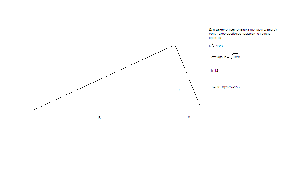 Найдите площадь прямоугольного прямоугольника если его высота делит гипотенузу на отрезки на 8 на 18 сантиметров