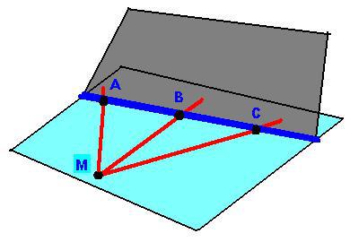 Лучи MA, MB и MC лежат в одной плоскости и пересекают плоскость a в точках A, B, и C. Доказать что точки A, B, C лежат на одной прямой