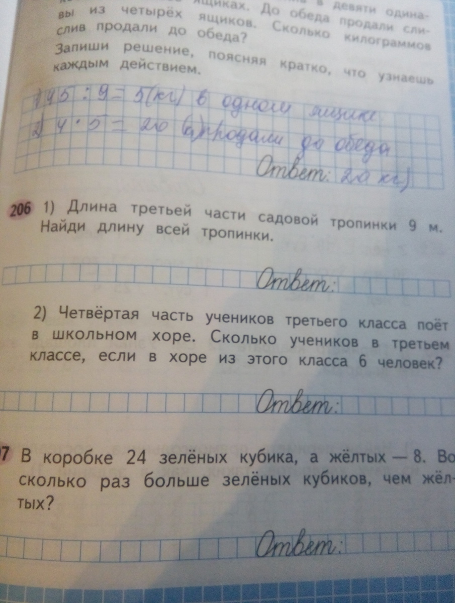 1)3*9=27м длина всей тропинки; 2)6*4=24 ученика в классе