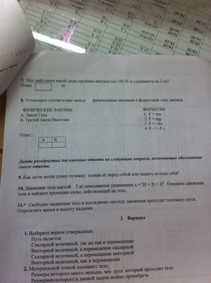 7) F=k*x=100*0.02=2 H
