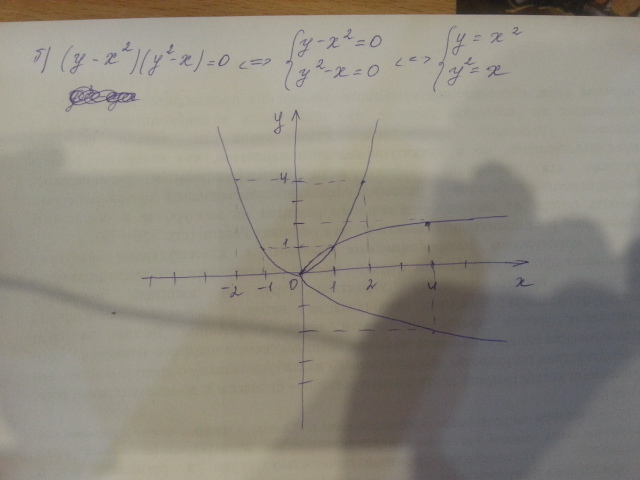 а) x =y^2 б) (y-x^2)(y^2-x)=0