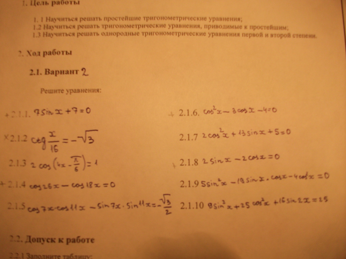 Помогите решить уравнение 2.1.2 , заранее спасибо