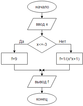 if x<=-3 then f:=9 else f:=1/(x*x+1);