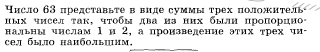 Число 63 представьте в виде суммы трех положительных чисел так, чтобы два из них были пропорциональны 1 и 2, а произведение этих чисел было наибольшим