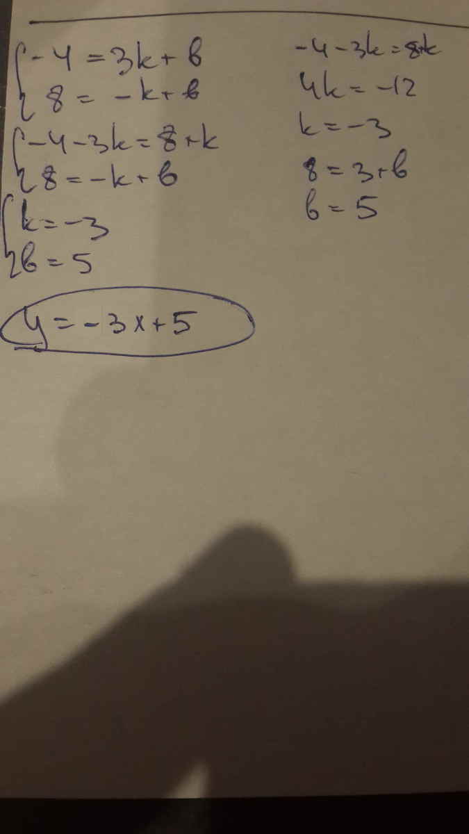 Подставим координаты точек в уравнение и получим систему из 2 уравнений с двумя неизвестными и решим её.