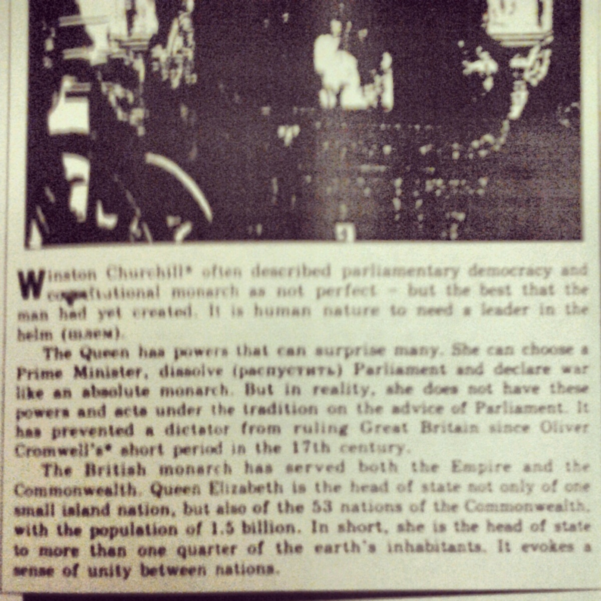 Уинстон Черчиль часто описывал парламентскую демократию и .... монархию как не идеальную,но самое лучшее что человек уже изобрел(создал)