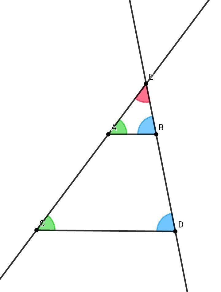 Проведём прямые АС и BD до пересечения в точке Е.