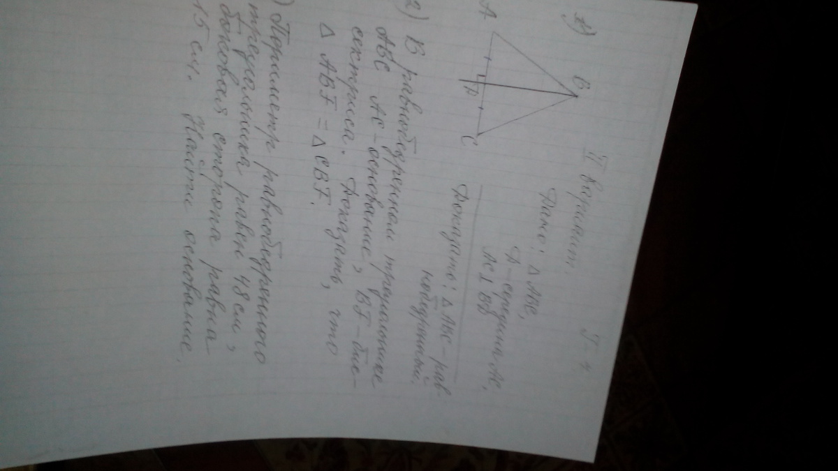 1. В равнобедренном треугольнике и высота, и средняя линия, и биссектрисса одна и таже линия. ВД -высота, так как она перпендикулярна основанию, вд средняя линия, так как делит основание по полам, вд биссектриса, так как делит угол по полам вершину.