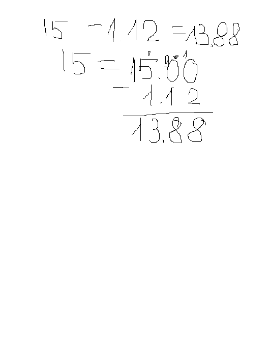 15 - 1.12=13.88