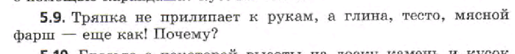 Потому что ткань состоит из такого материала который не липнет , а глина так как смещена с водой липнет к рукам =}