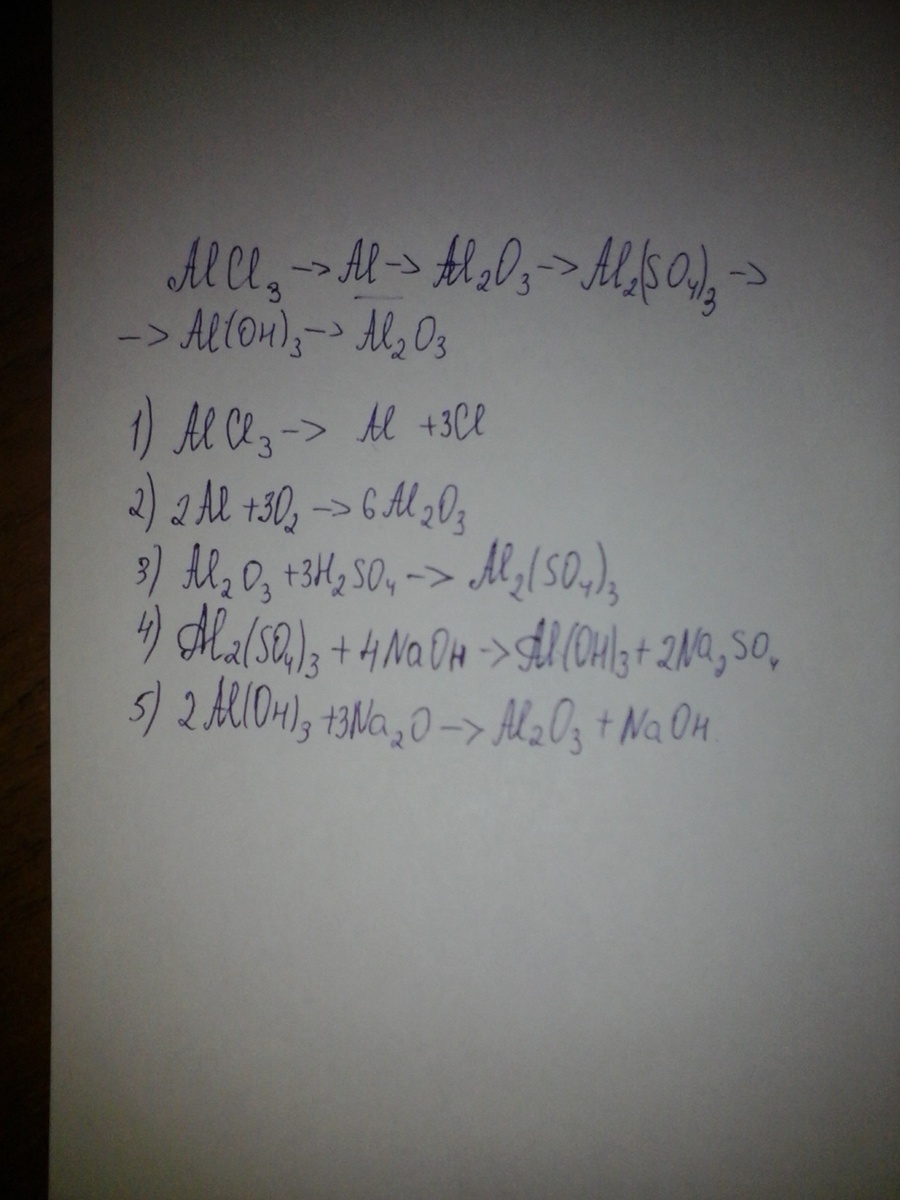 AlCl3 – Al – Al2O3 – Al2(SO4)3 – Al(OH)3 – Al2O3