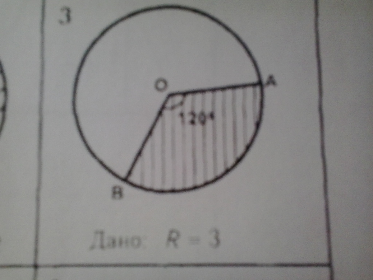 S=3 в квадрате * пи / 3 =9пи/3= 3пи 120 градусов это 1/3 груга