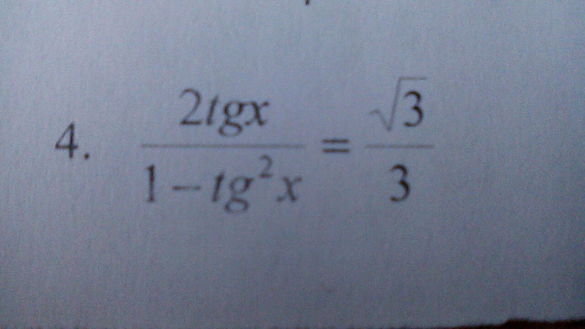 2tgx/((1-tgx)(1+tgx))=√3/3, где 1-tgx≠0, tgx≠1, x≠π/4+πk, 1+tgx≠0, tgx≠-1, x≠-π/4+πk