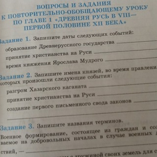 Запишите даты следующих событий: образование Древнерусского государства, принятие христианства на Руси, время княжения Ярослава.