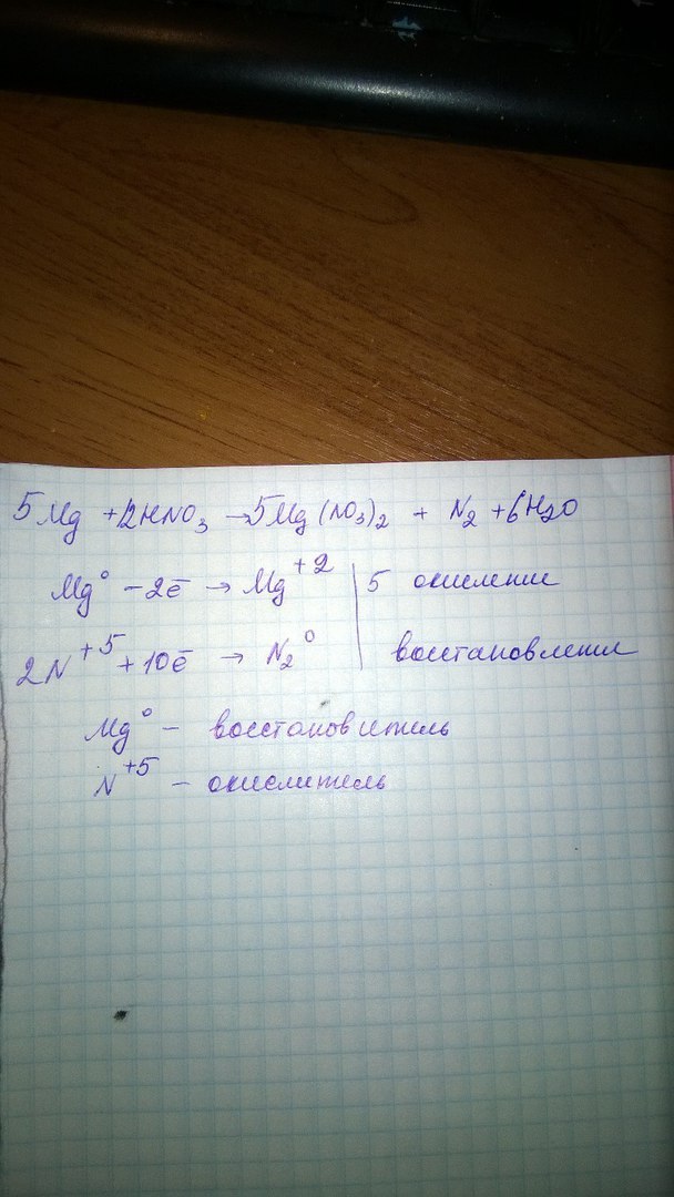 Mg+HNO3(разб.)=...+N2+...