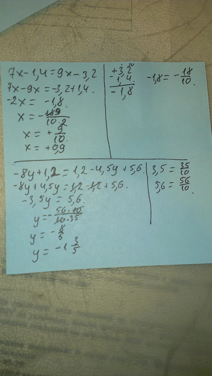 7х-9х = -3,2+1,4 -8у+1,2 = 1,2-4,5у +5,6