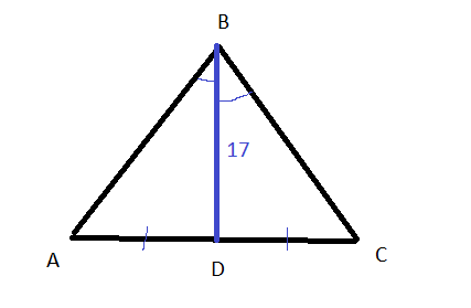 в треуголньнике АВС АВ = ВС - биссектриса угла В . найди периметр треугольника АВD, если BD=17см, а периметр треугольника АВС равен 68см.