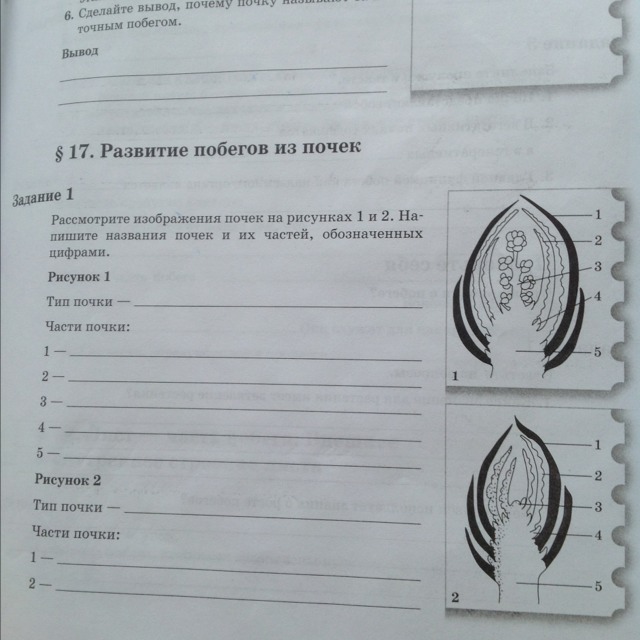 Почки у плодовых растений бывают двух типов: вегетативные и плодовые. Они обычно закладываются в пазухах листьев. Из вегетативных ночек развиваются листья и побеги, а из плодовых — цветки и потом плоды (смотри по рисунку)