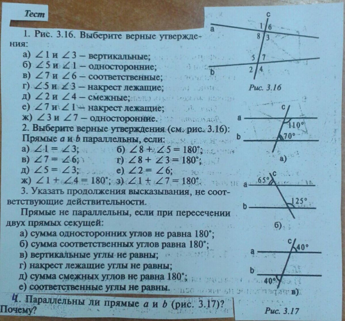 б) Нет, так как угол 5 = 180 – угол 7 = 180 – 125 = 55 ≠ углу 1