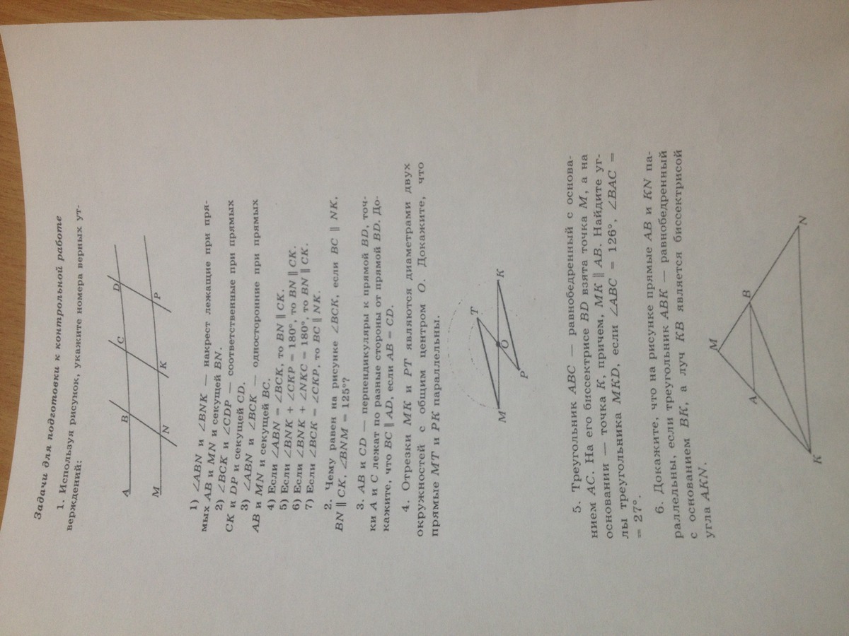 4. Поскольку МО и ОК - радиусы одной окружности, они равны, РО=ОТ по той же причине. Углы МОТ и РОК равны как вертикальные. Из всего этого следует, что треугольник МОТ=РОК. Значит, угол ТМО=ОКР, а это накрест лежащие углы при прямых МТ и РК и секущей МК. Углы равны, значит прямые параллельны, что и требовалось доказать.