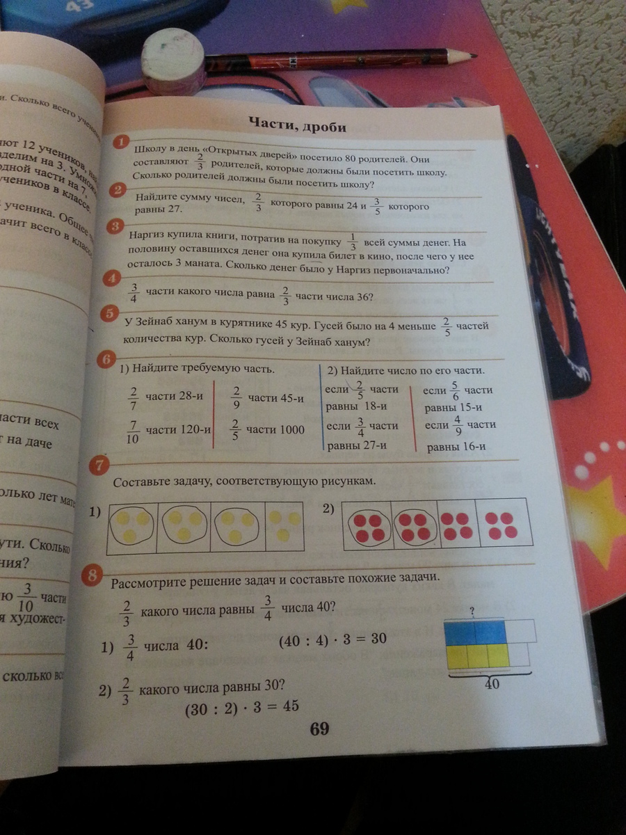 7.а) Три четвертых какого числа равны 9?