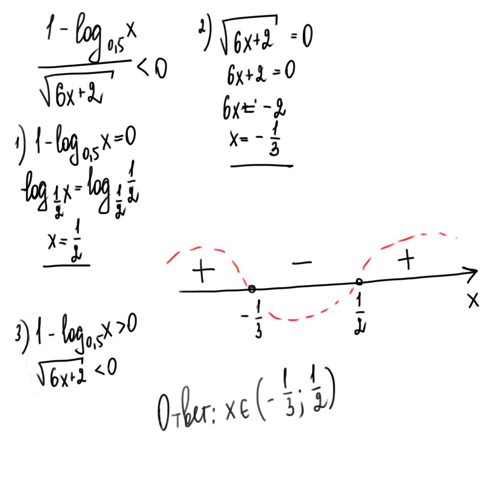 Для того, чтобы существовал логарифм, необходимо, чтобы x>0. При таких х знаменатель существует и положителен, поэто на него можно домножить и "забыть" о нем.