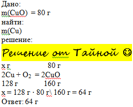 Сколько меди потребуется при взаимодействии с кислородом при взаимодействии с кислородом для получения 80 г , оксида меди.
