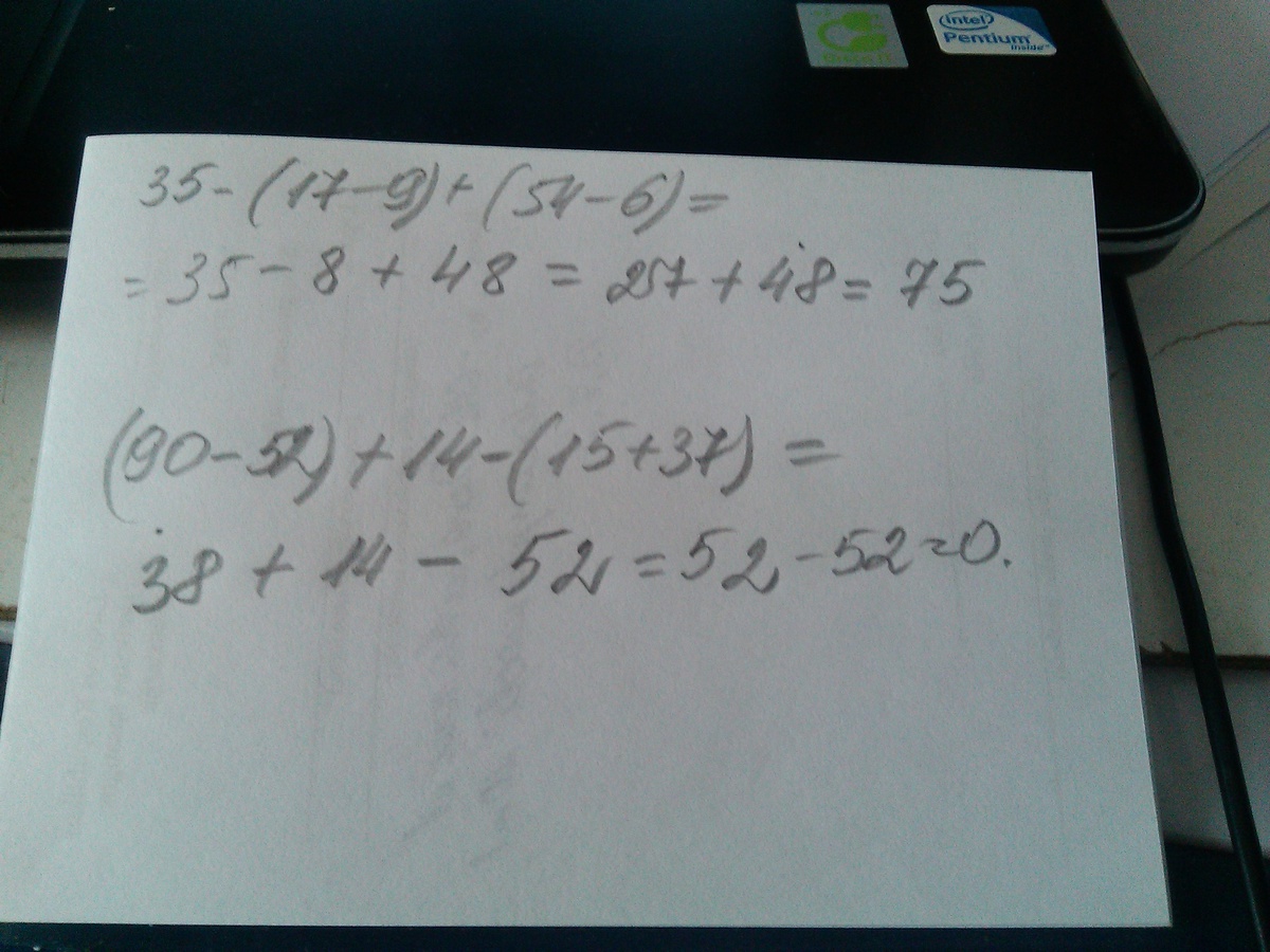 17 - 9 = 8 90 - 52=38 35 - [17 - 9 ] + [ 54 - 6 ] = 75