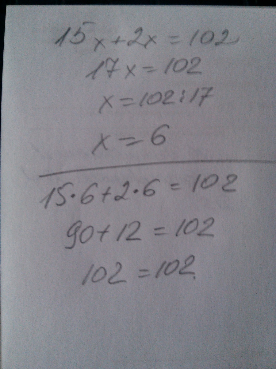 15х+2х=102; 17х=102; х=102:17; х=6