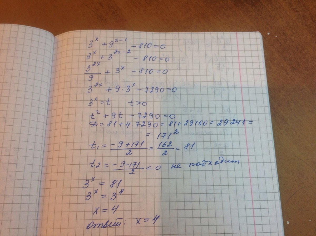 3^х + 9^(х-1) - 810 = 0
