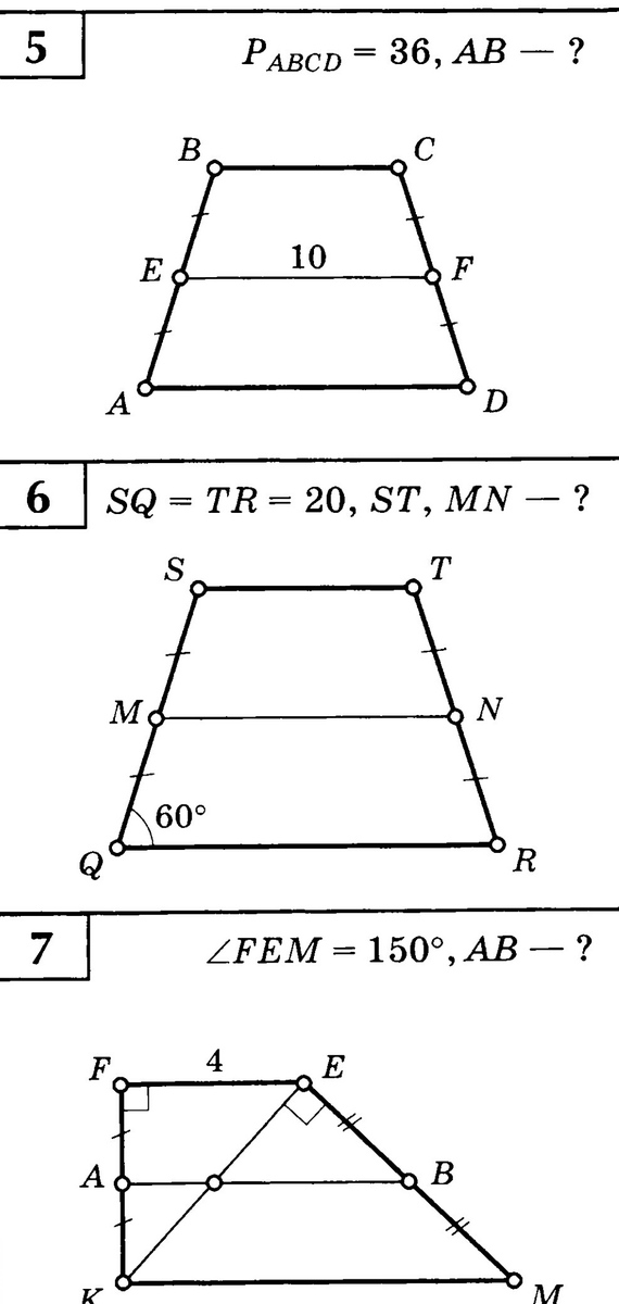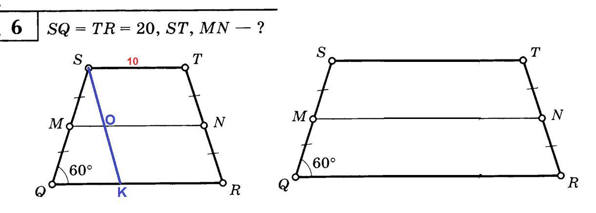 6. В этой задаче не хватает данных. На рисунке я показала, что эти две трапеции удовлетворяют условию задачи, т.е. однозначно найти длины ST и MN по таким данным невозможно.