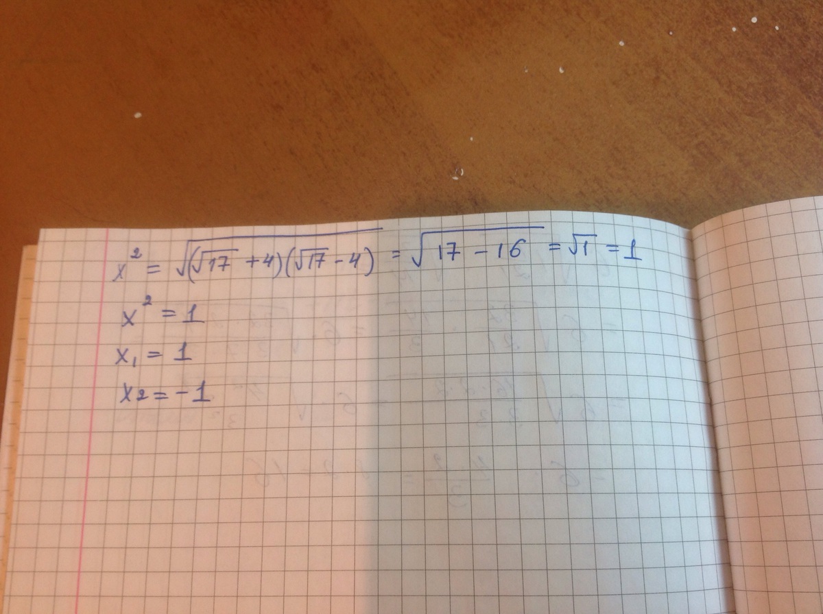 х в квадрате= √(√(17) + 4 × √(√(17) − 4))