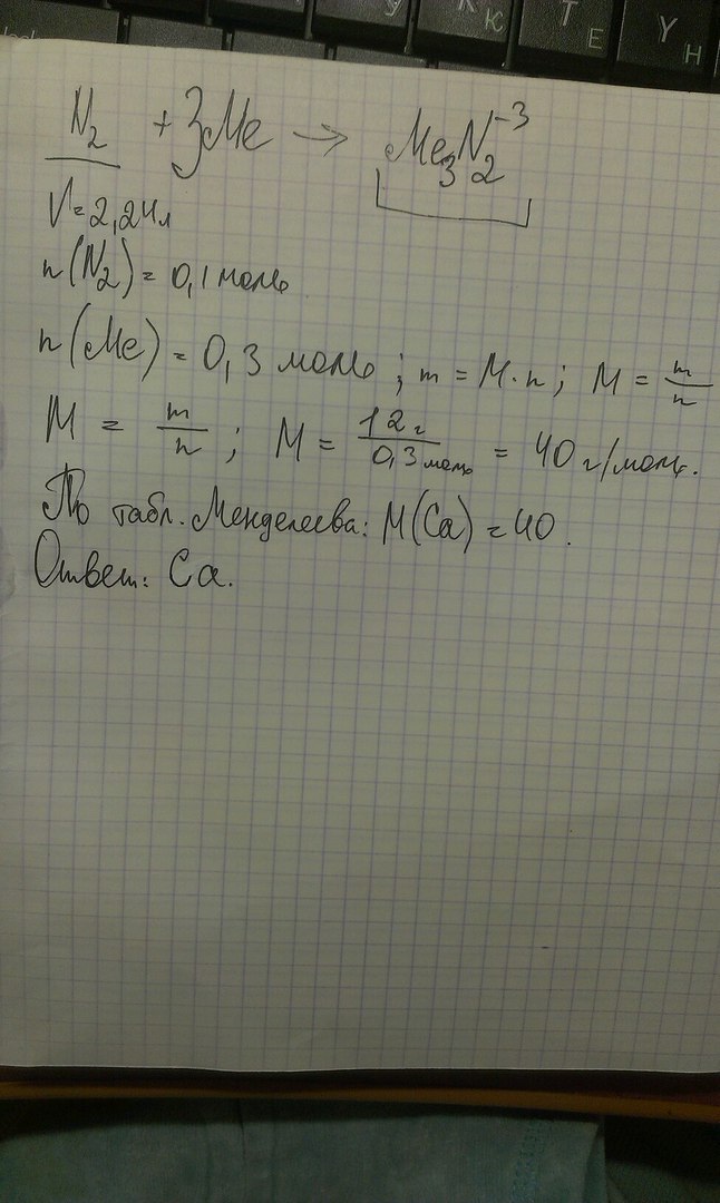 12 грамм двухвалентного металла вступают в реакцию с азотом объемом 2,24 . Определите неизвестный металл