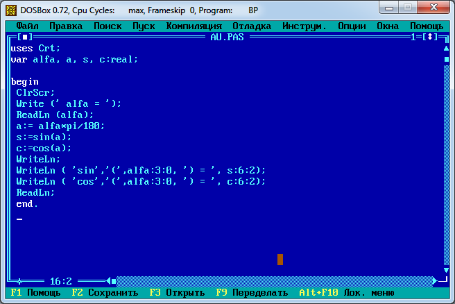 WriteLn ( 'cos','(',alfa:3:0, ') = ', c:6:2);