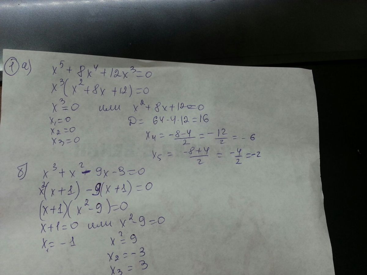 а) x^5 + 8x^4 + 12x^3 = 0;