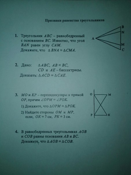 2) ОМ=РК=3 см и МР=ОК= 7 см, т.к. тр. ОРМ = тр. РОК по доказаному