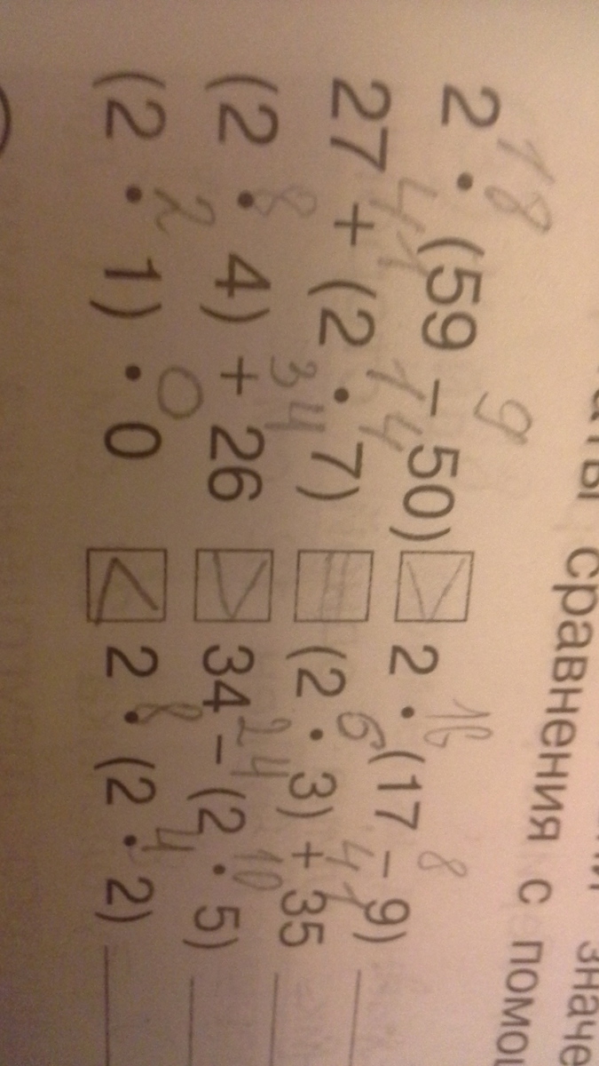 вычисли и сравни значение выражения. запиши результаты сравнения с помощью знаков >,<или =.