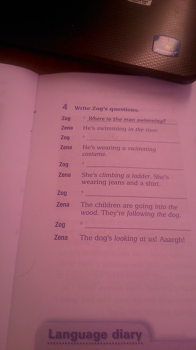 5. What is the dog doing? или Who is the dog looking at?