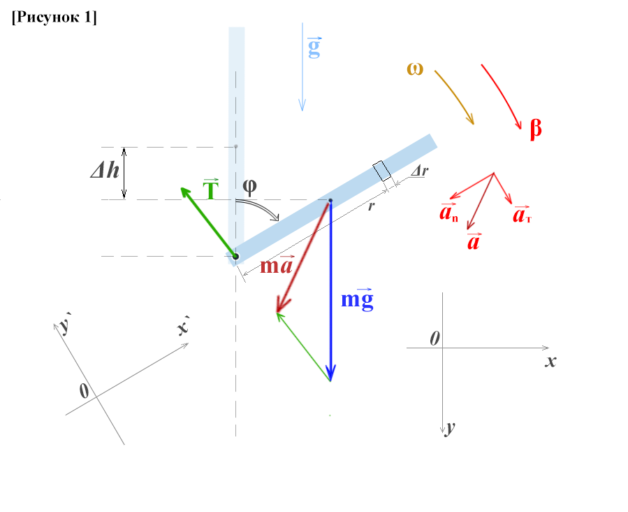 , направленное вдоль него к оси. Это нормальное ускорение создаётся центростремительной силой, необходимой для удержания стержня, т.е. суммой продольных к стержню составляющих сил тяжести