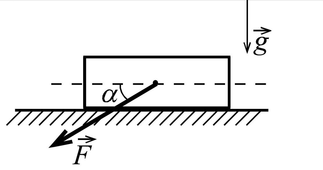m =12 кг, для того чтобы сдвинуть её с места? Сила направлена вдоль ручки тележки и составляет с горизонтом угол A= 30 градусов , а коэффициент трения между полом и