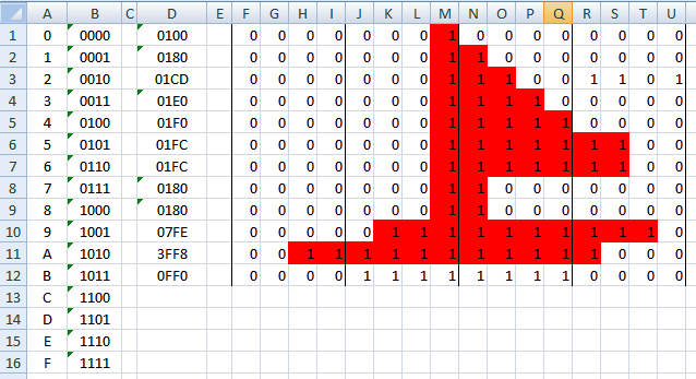 Декодируйте черно-белое изображение (1 – пиксель окрашен, 0 – пиксель не окрашен), если каждая строка изображения закодирована четырехзначным шестнадцатеричным числом: