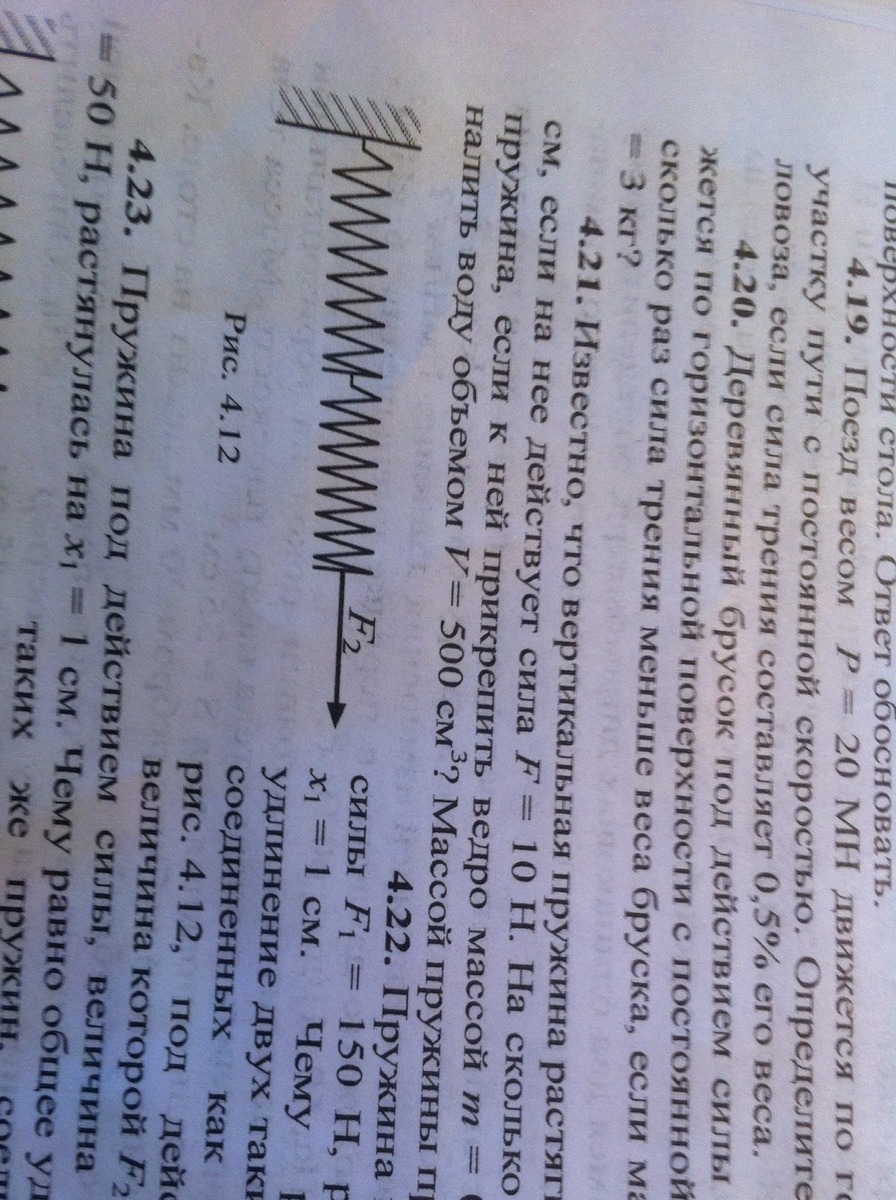 Известно , что вертикальная пружина растягивается на x=2 см , если на нее действует сила F=10 H. На сколько ра стянется пружина , если к ней при крепить ведро массой m=0,2 кг и в него налить воду объемом V=500см^3? Массой пружины принебречь (4.21)