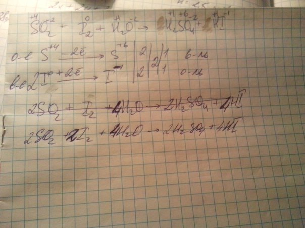 Используя метод электронного баланса, в уравнении реакции расставьте коэффициенты методом электронного баланса и укажите окислитель и восстановитель SO2+I2+H20=>H2SO4+HI