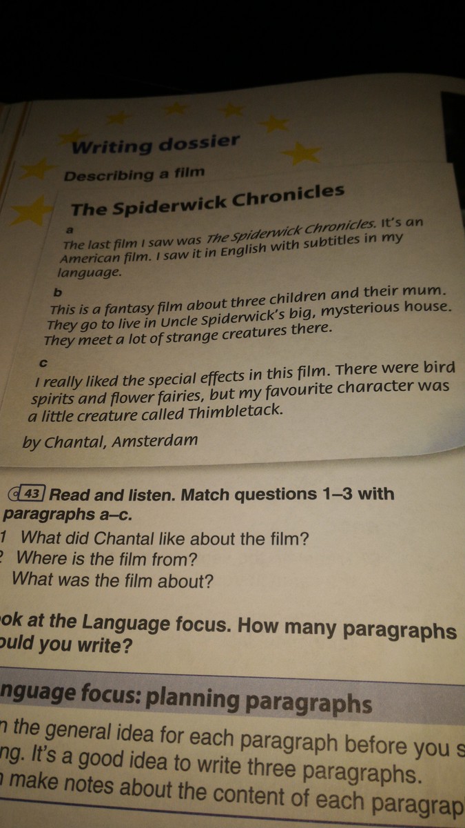 a)Последний фильм, который я смотрел-The Spiderwick Chronicles.Это американский фильм. Я смотрел его на английском с субтитрами на моём языке.