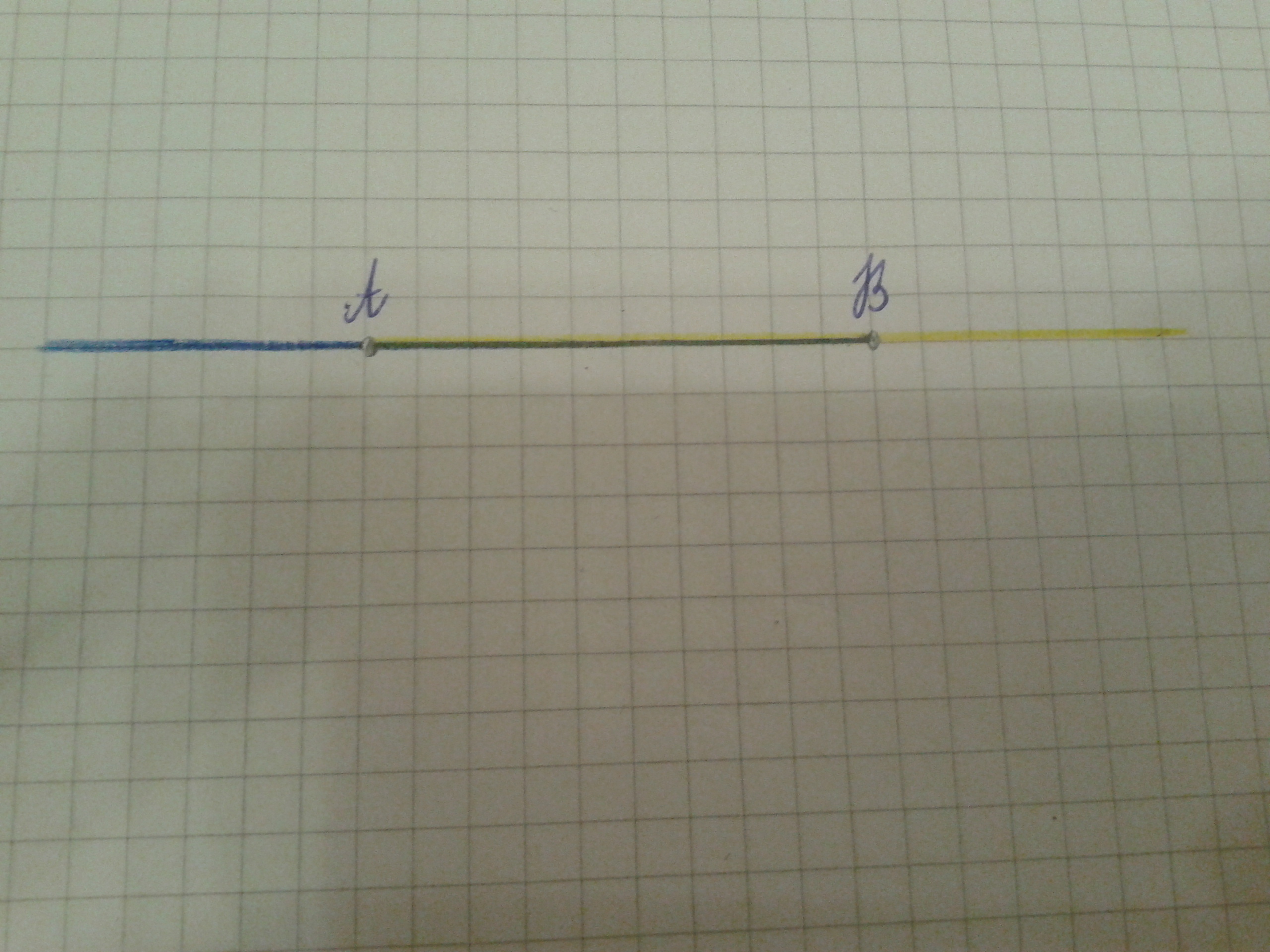 отметь точки А и В на расстоянии 5 см одна от другой Построй желтым карандашом луч АВ а синим - луч ВА
