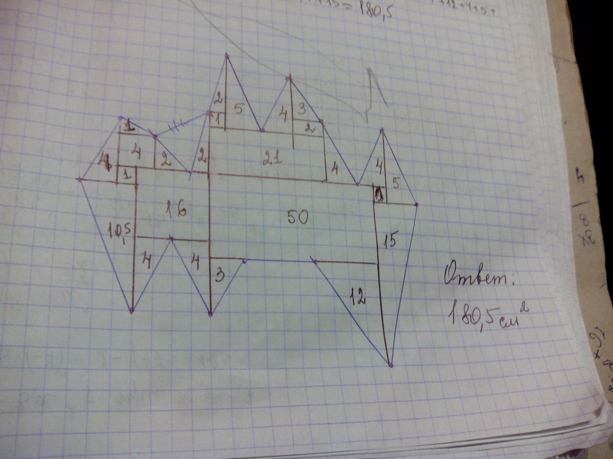 На приведенном рисунке длина одной стороны клеточки равна 1 сантиметру. Посчитайте площадь нарисованного многоугольника в квадратных сантиметрах. В ответе запишите только число.