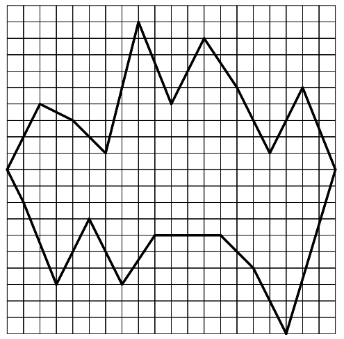 На приведенном рисунке длина одной стороны клеточки равна 1 сантиметру. Посчитайте площадь нарисованного многоугольника в квадратных сантиметрах. В ответе запишите только число.