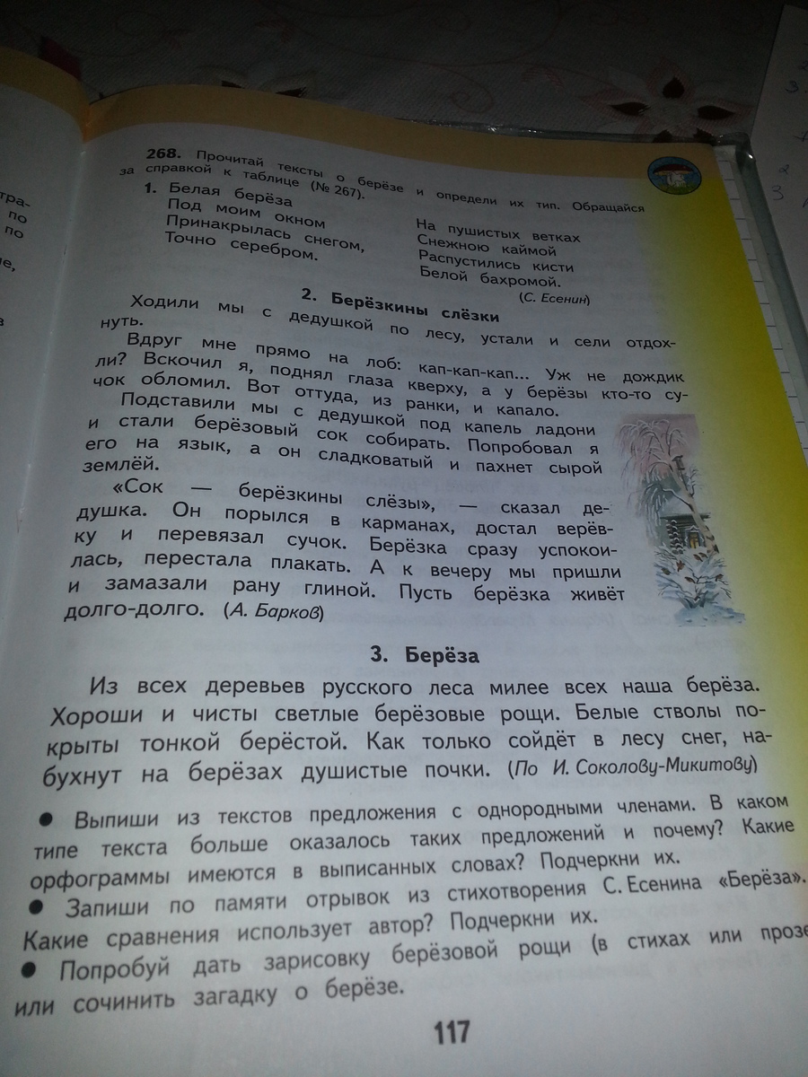 тип каждого текста повествование. описание. рассуждение. и выписать с однородными членами.