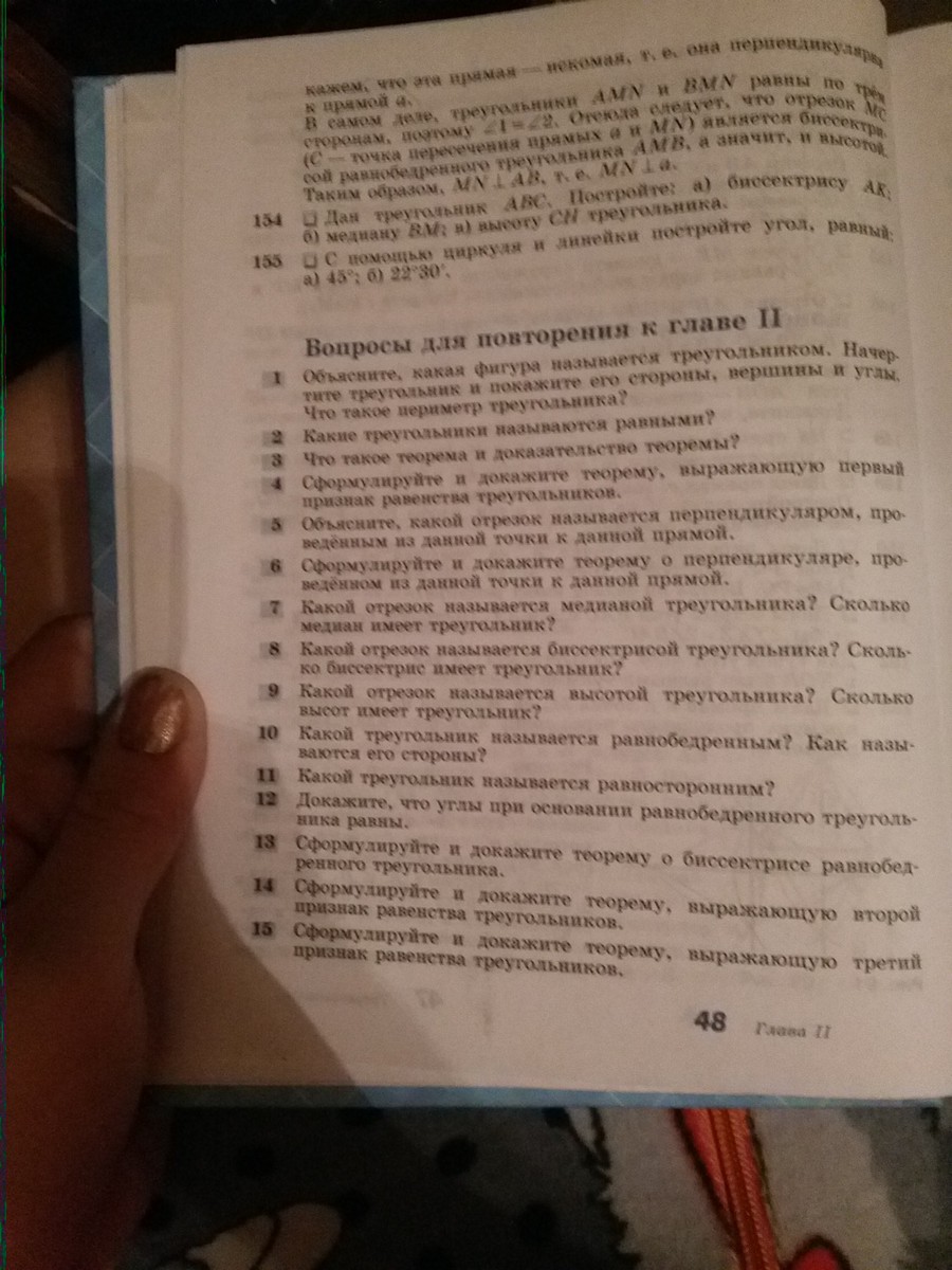 14. Если сторона и два прилежащих к ней угла одного треугольника соответственно равны стороне и двум прилежащим к ней углам другого треугольника, то такие треугольники равны.