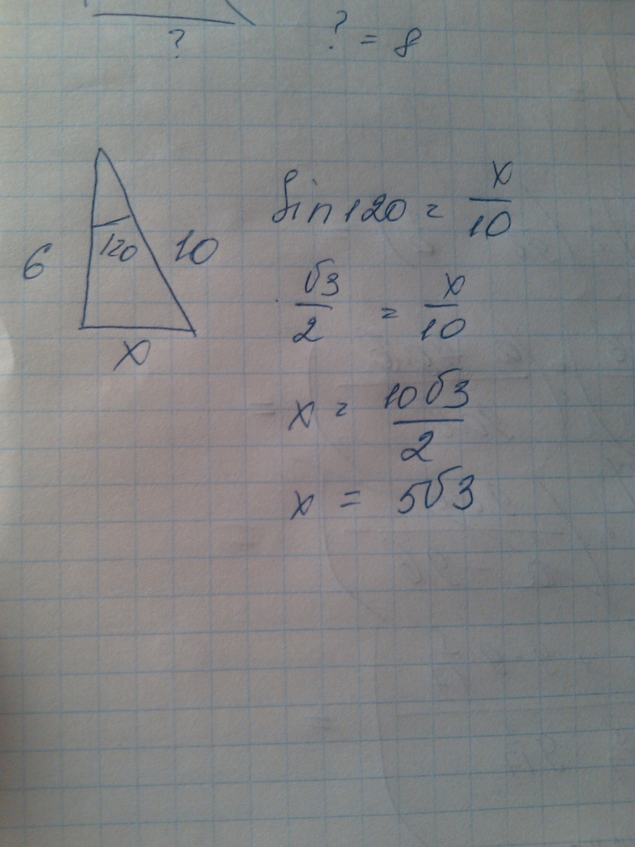 Дан треуг АВС, АВ = 6 см ВС = 10 см угол В = 120 градусов. Найти АС.